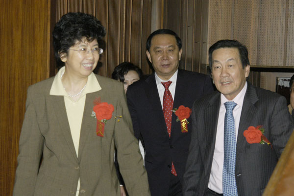 国家广电总局副局长赵实(左) 铁岭市市长张竞强(中)、新加坡驻华大使陈燮荣出席首映式