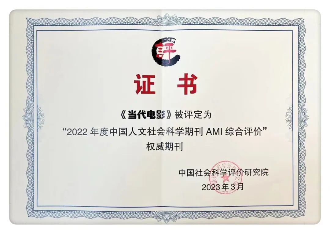 《当代电影》入选“2022年度中国人文社会科学期刊AMI综合评价”权威期刊!