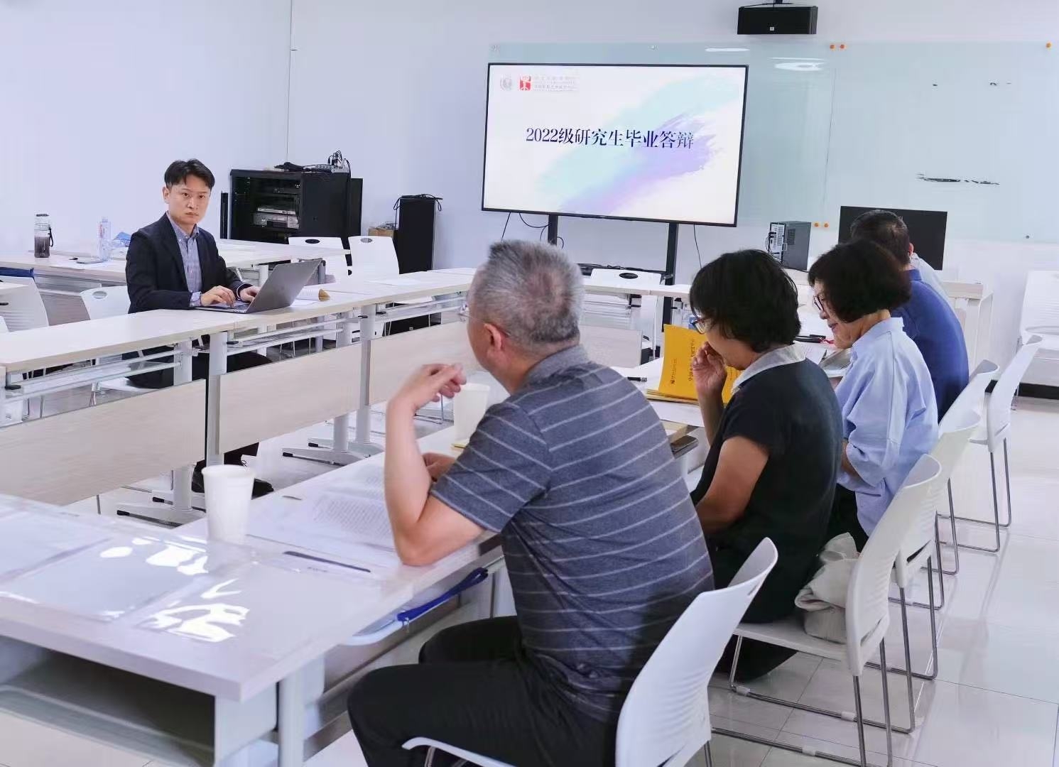 在答辩中,学位申请人充分阐述自己硕士学位论文的核心观点与写作思路,并认真回答各位答辩专家的提问。艺术硕士申请人还通过PPT和短片播放的方式展示了实践成果。