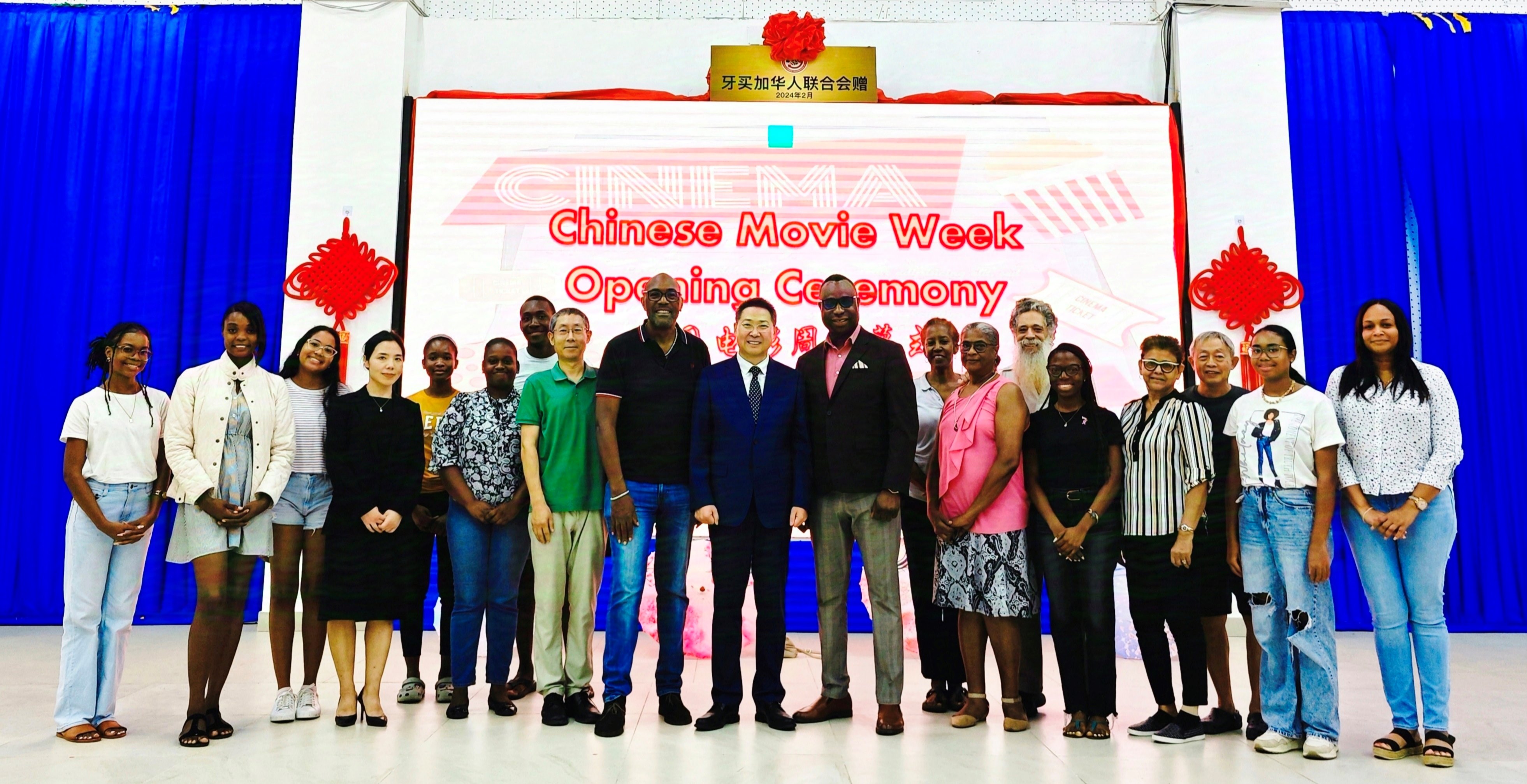 2024年10月11日,中国驻牙买加使馆举办首届“中国电影周”开幕式,陈道江大使和牙文化、性别、娱乐和体育部常秘伯纳德出席并致辞。