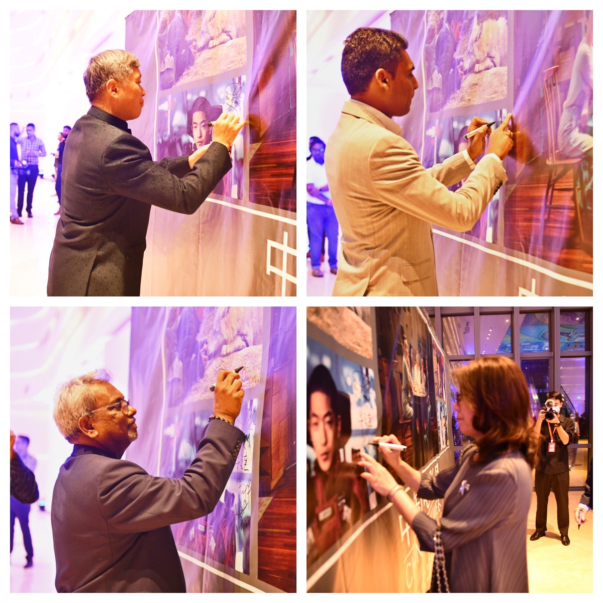 朱大使和蒂卢克部长及嘉宾在电影周海报上签字