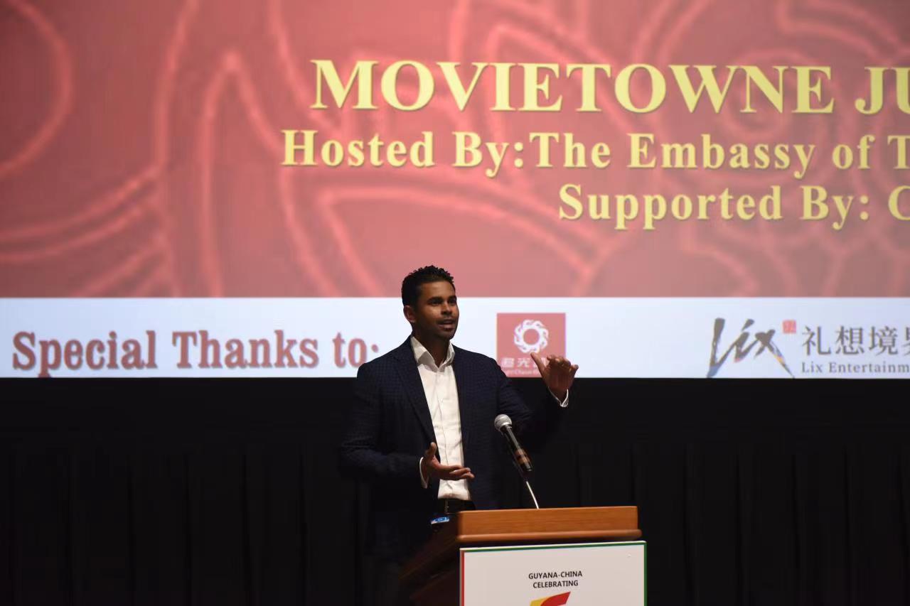 当地时间6月22日,在中国电影资料馆大力支持下,由中国驻圭亚那使馆举办的庆祝中圭建交50周年“中国电影节”在圭首都乔治敦电影城(Movie Towne)正式拉开帷幕。圭文化部、外交和国际合作部、教育部、投资局等官员及私营业委员会、青年学生等社会各界友华人士,驻圭使团代表、中资机构和华侨华人代表等140余人参加开幕式。