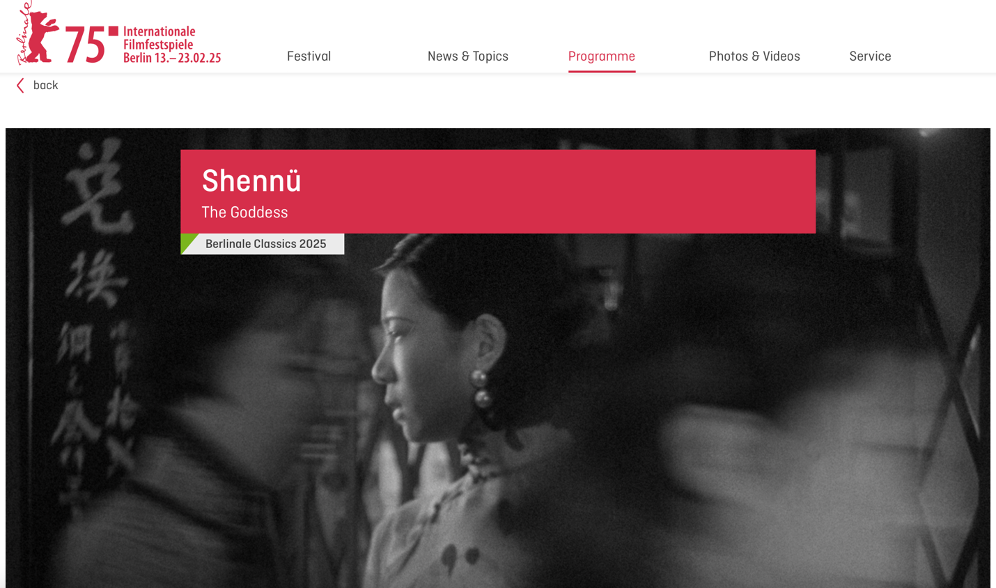 当地时间1月13日,第75届柏林国际电影节经典单元(Berlinale Classics)揭晓片单,中国电影资料馆修复的经典影片《神女》成功入围。