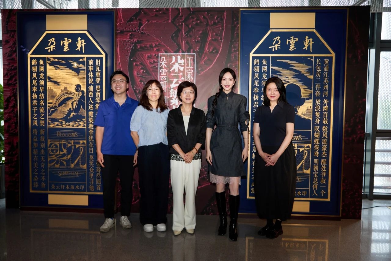 活动现场,唐嫣、冯丹、杨芳、沈玲共同为特展揭开帷幕。以《繁花》剧集人物为灵感,由王家卫导演亲自策划,著名设计师黄海担纲设计,朵云轩以国家级非遗木版水印技艺联动多家非遗深度共创的巨幅木版水印作品《云起花开之青云》惊艳亮相,引得现场围观的影迷掌声雷动,气氛十分热烈。