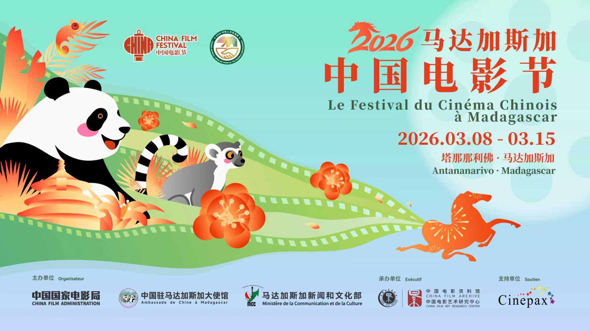 本次电影节由中国国家电影局、中国驻马达加斯加大使馆、马达加斯加新闻和文化部共同主办,中国电影资料馆承办,展映活动将持续至3月15日。《长空之王》《你好,李焕英》《封神第二部:战火西岐》《中国机长》《八角笼中》《秀美人生》6部影片将轮番上映,全方位、多角度向马达加斯加民众展示真实、立体、全面的中国。