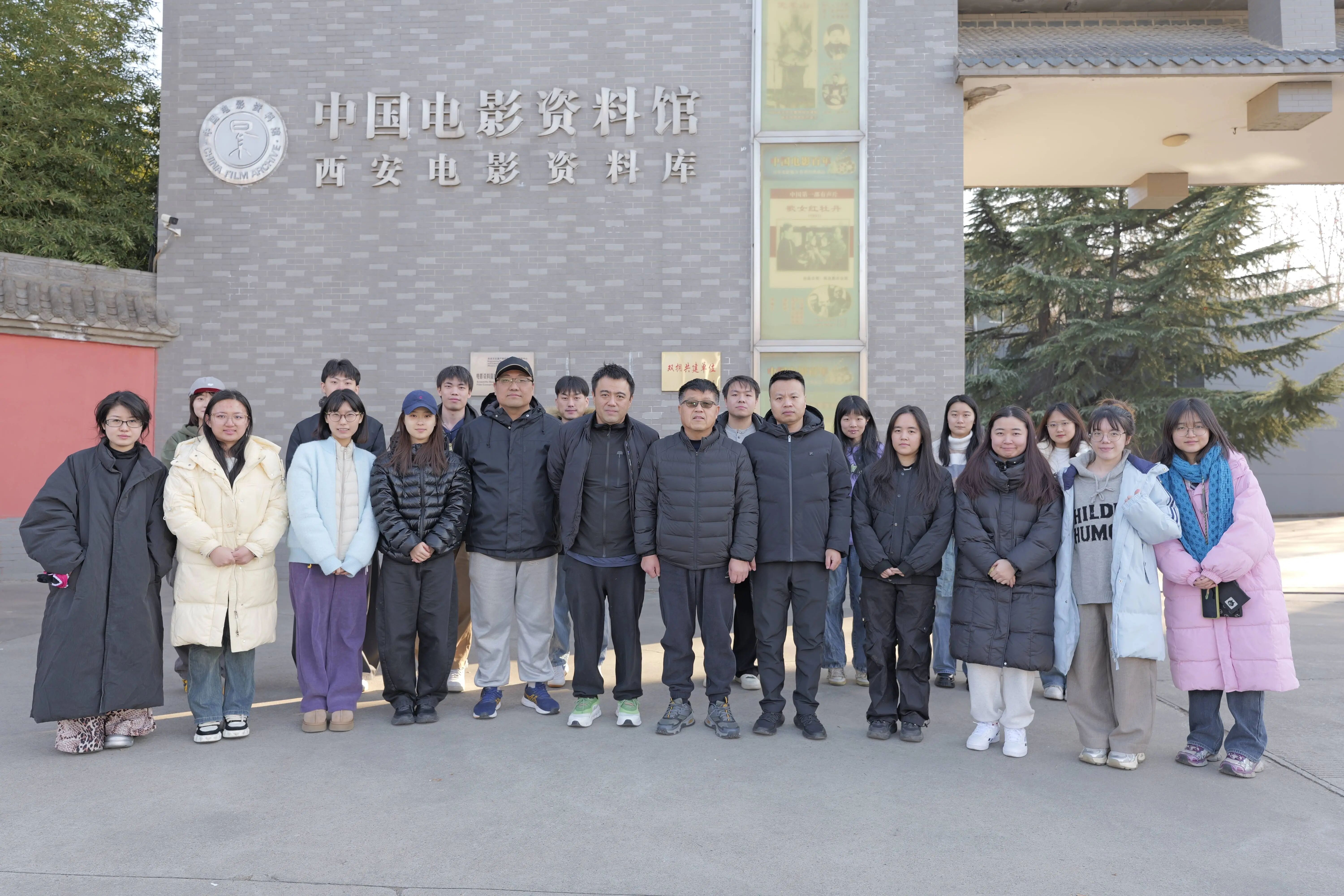 师生同学在西安电影资料库门前合影