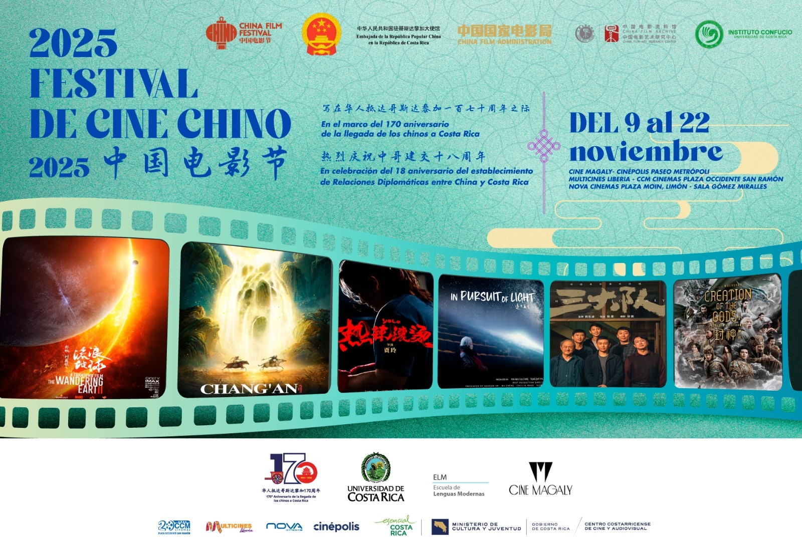 本次电影节由中国驻哥斯达黎加使馆、中国国家电影局主办,中国电影资料馆、哥斯达黎加大学孔子学院承办,哥文化和青年部电影中心及五家影院协办。电影节将持续至11月22日,当地观众将观看到《长安三万里》《热辣滚烫》《追光万里》《三大队》《封神第一部:朝歌风云》等多部优秀中国电影。